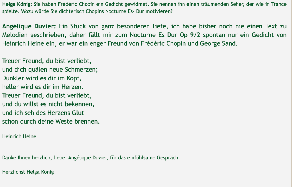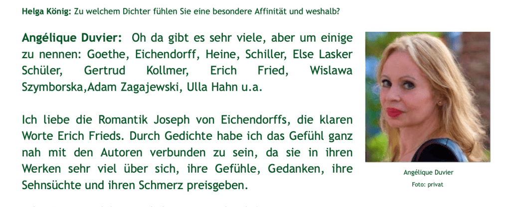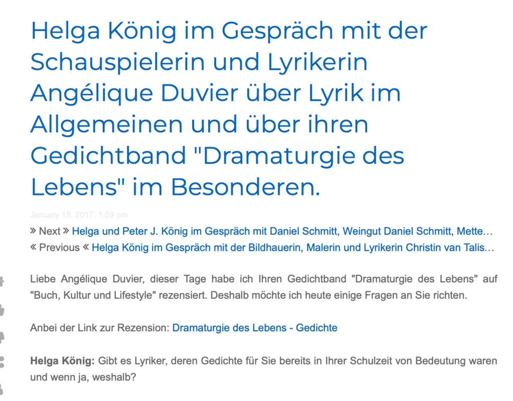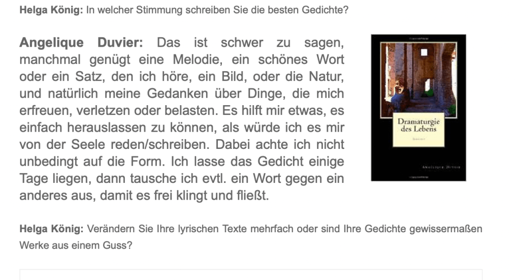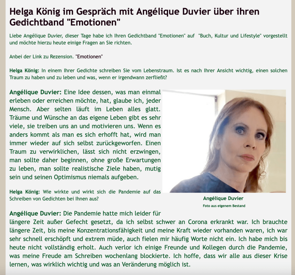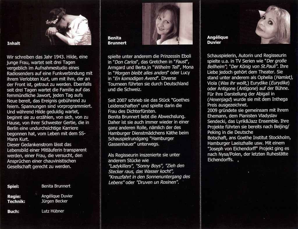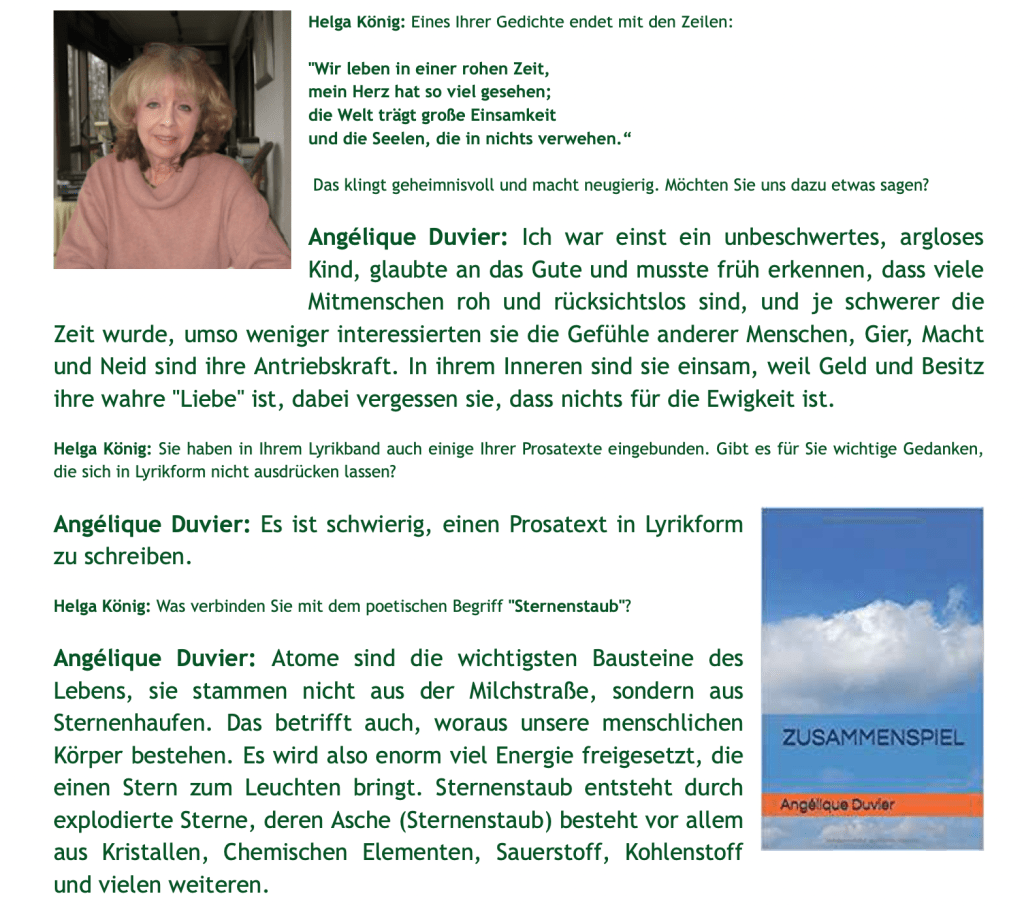 Hamburger Abendblatt Interview 17.02.2024 Augustheater – Neu -Ulm – PocketKlassiker Biennale Der König von St. Pauli – Angélique Duvier in der Rolle der: Mona Angélique Duvier und Hilmar Thate in dem Fernsehmehrteiler: Der König von St. Pauli. Regie: Dieter Wedel Ein ungleiches Paar – Mit: Heide Keller, Ute Mora, Beate Hasenau, Angélique Duvier, Horst Kuka u.a. Regie: Karin Hercher