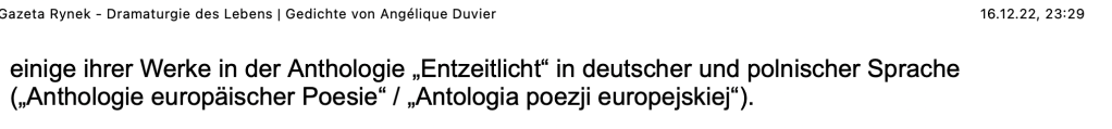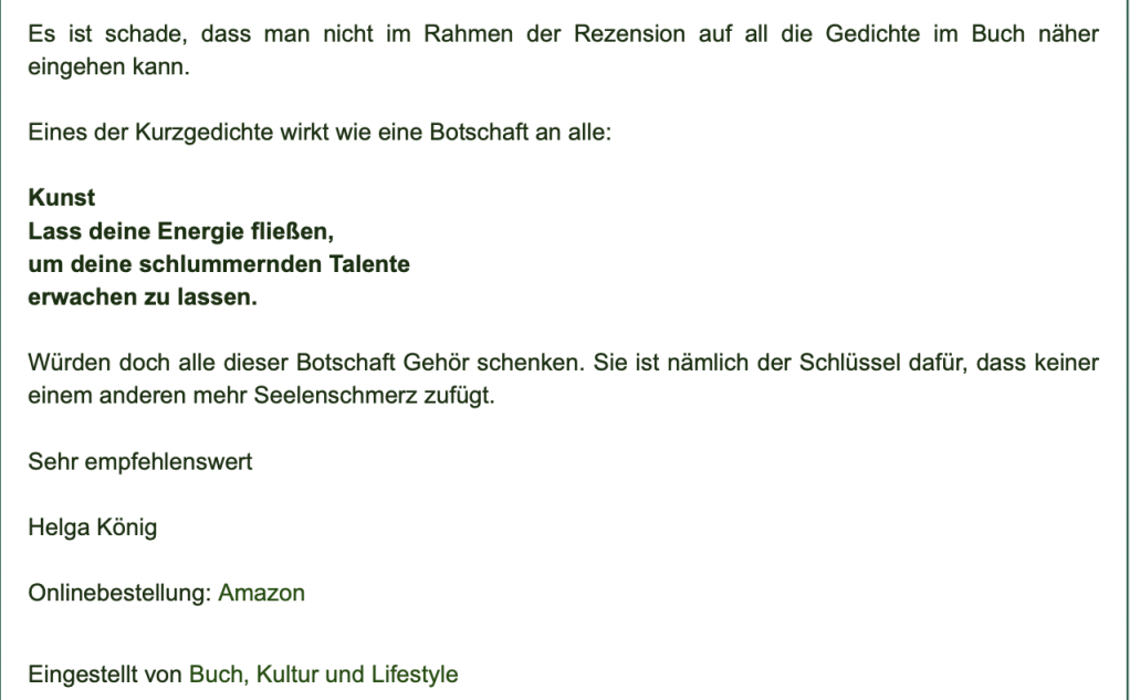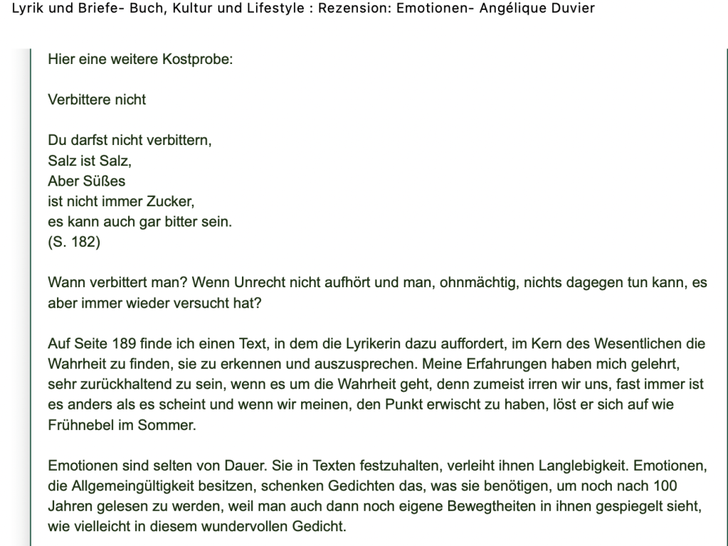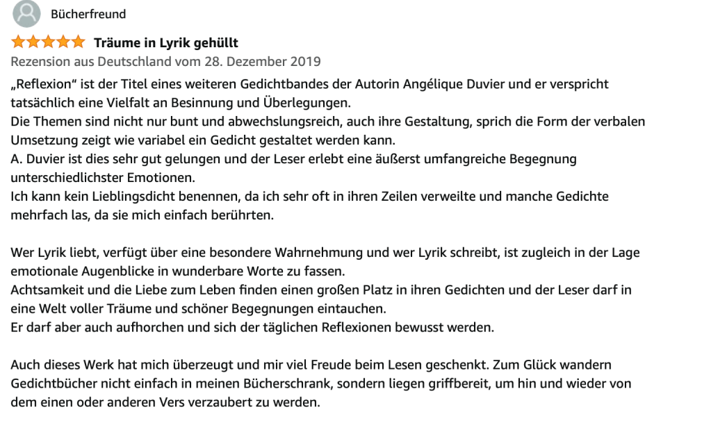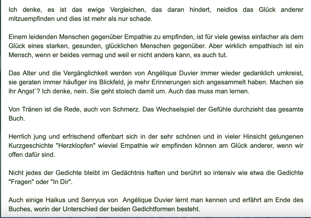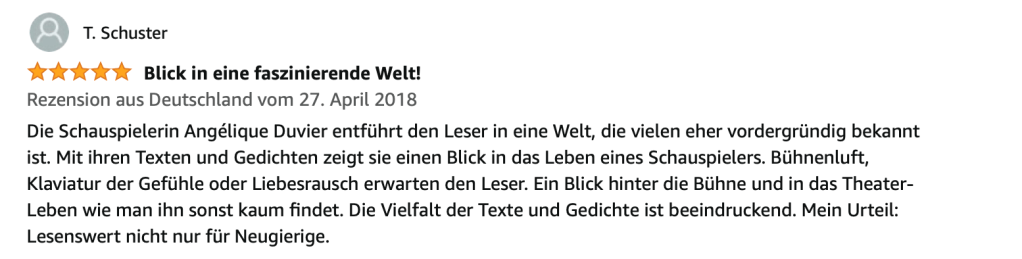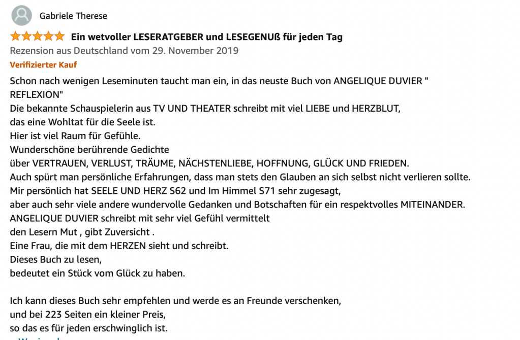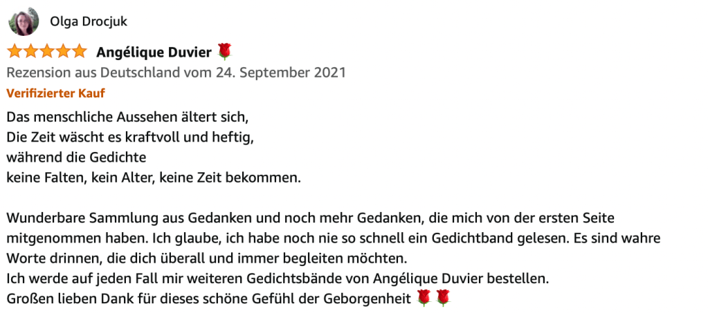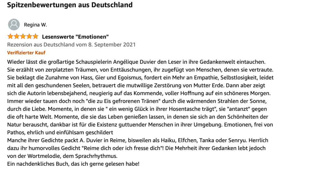 Alle Bücher von Angélique Duvier finden sie auf Amazon!„Melancholie eines Gauklers“ und alle anderen Bücher von, Angélique Duvier können sie bei Amazon bestellen.Alle Bücher von Angélique Duvier finden sie auf Amazon!Zu beziehen über Amazon!Alle Bücher über Amazon zu beziehen!Taschenbuch,Hardcover und E-Book – AmazonE-Book – AmazonDer Fünfte Freund – Kriminalroman von: Angélique Duvier, Magnus Gosdek, Heide Gerdts, Walt Reckolg – Amazon DASEIN Lyrik&Prosa – November 2023 – Hardcover und Taschenbuch – Amazon